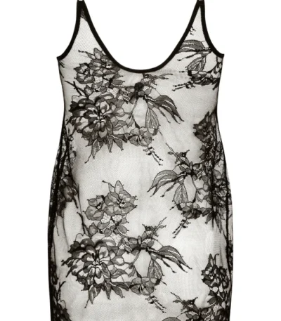 Product description Made from fishnet lace with a large floral pattern, the sexy Divine Promesse mini dress features a v-neckline,