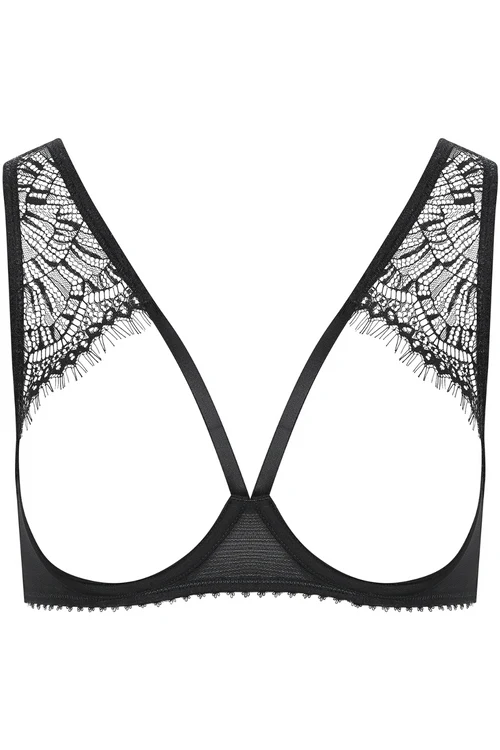 Indulge in luxury with the Accroche Coeur Naked Breast Bra. This cupless bra features a breathtaking combination of recycled eyelash lace and sheer tulle, accented with picot elastic. The underwiring is discreetly covered in tulle, while the double adjustable straps and hook-and-eye fastening provide a perfect fit.