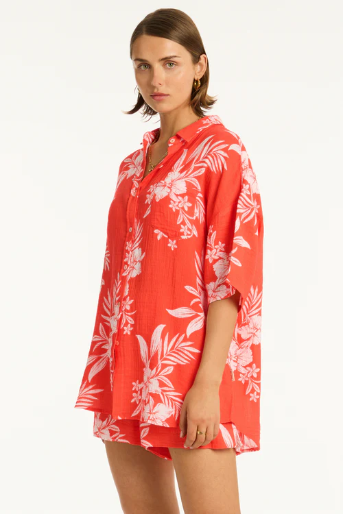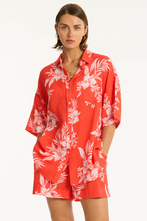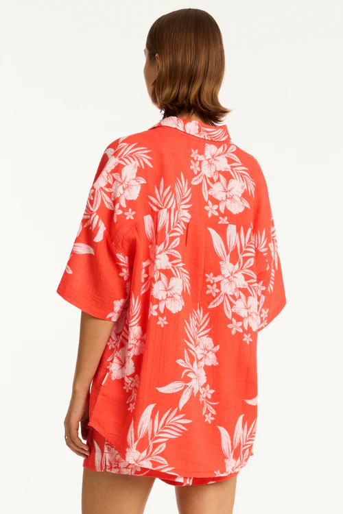 Aloha Cover Up Cotton Shirt Flame