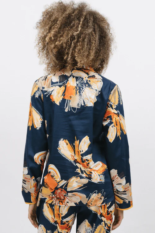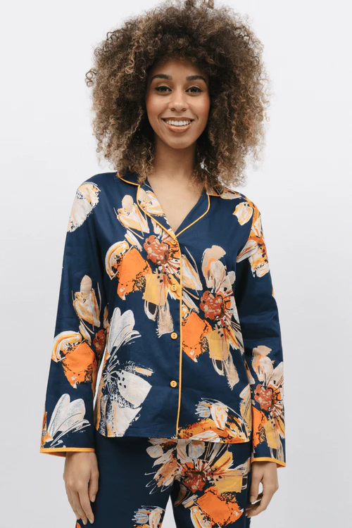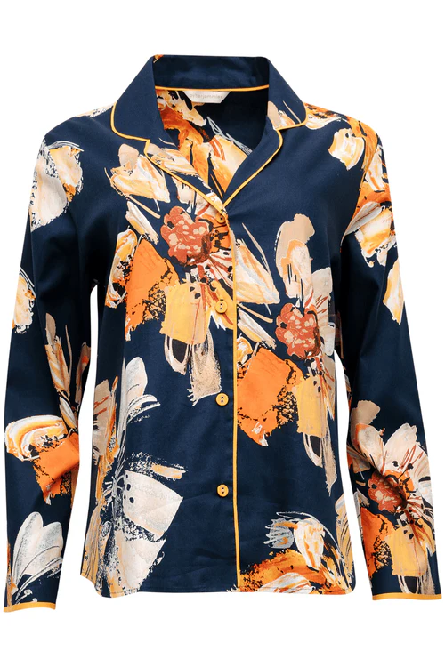 The Cosmo pyjama top is made from a blend of cotton and modal, trimmed with modal. The long-sleeved top has an open collar and fastens at the front with modal-covered buttons. Wear it with the matching pyjama trousers for a sophisticated look to relax or sleep in.