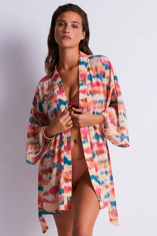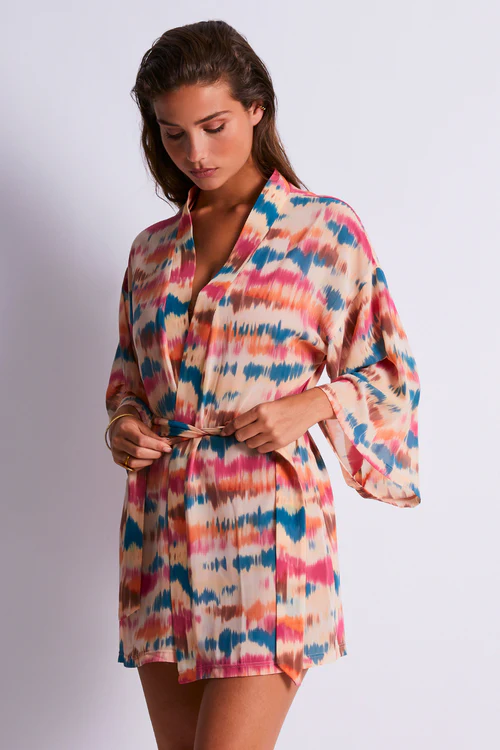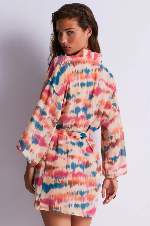 Discover the perfect fusion of sensuality and sophistication with the Evening Sand Beach Cover-Up from Aubade. This stunning piece features a modern, elegant design with a sexy low neckline and loose-fitting sleeves. Made from sheer polyester mesh, it drapes beautifully against the skin for an irresistible look. Complete with a detachable belt for added structure.