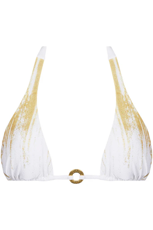 Indulge in luxury with the Feuille D’or Triangle Bikini Top from Lise Charmel, made from printed mesh with a stunning gold leaf effect. This triangle bra offers adjustable coverage with its sliding bottom cups. It is adorned with a gold-coloured ring between the cups and features lined and removable padding for your desired fit.