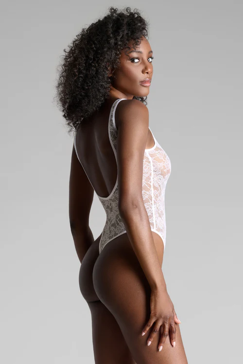 Be the first to review “Flashback Lace Open Back Thong Bodysuit White”