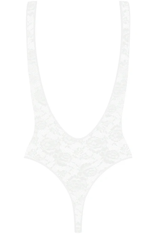 Introducing the Maison Close Flashback Backless Thong Body in white—a stunning blend of luxury and allure. Crafted from bespoke semi-sheer floral lace, this bodysuit features wide shoulder straps that offer style and support. The plunging open back adds a daring touch, while the high-leg cut beautifully elongates your silhouette. Designed with smooth, flat elastic edging and a thong bottom, it promises a sleek and flattering fit.
