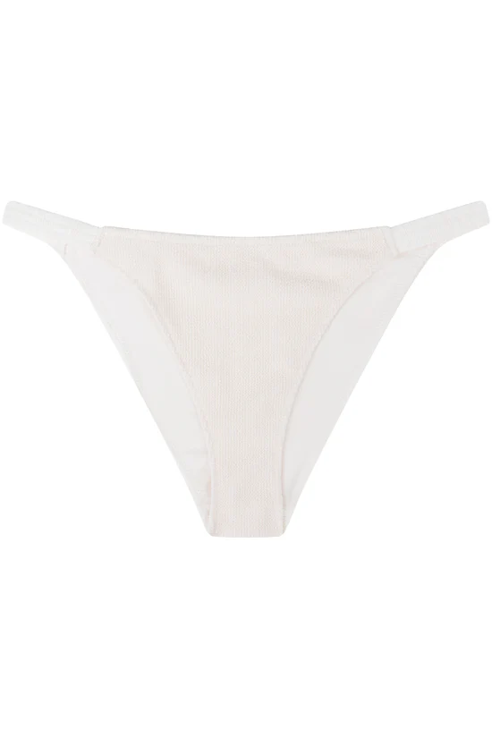 The Rosie Bikini Bottom from Love Stories is perfect for a day at the beach or pool. Made from soft and stretchy off-white fabric with a textured crinkle finish and subtle stitch detailing. The tanga-style and tonal, slender sides provide the right amount of coverage, sitting higher on the hips for a flattering fit. Plus, the extra lining layer ensures no transparency.