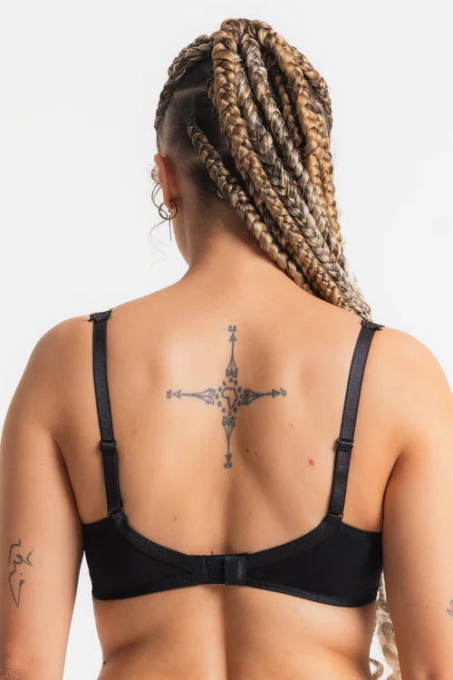 Be the star with the Superstar Plunge Bra in black by French brand Louisa Bracq—a masterpiece of luxury and allure. Designed with 3-part underwired cups, this bra enhances and supports with a seductive plunge neckline. The top of the cups is adorned with stunning gold-thread star embroidery on tulle. The bottom of the cups are crafted from sumptuous opaque fabric for a smooth, sophisticated finish. A delicate lightning-shaped jewel sits elegantly between the cups, bringing an extra sparkle of refinement.