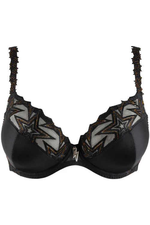 • Luxurious gold-thread star embroidery graces the tulle along the top of the cups.