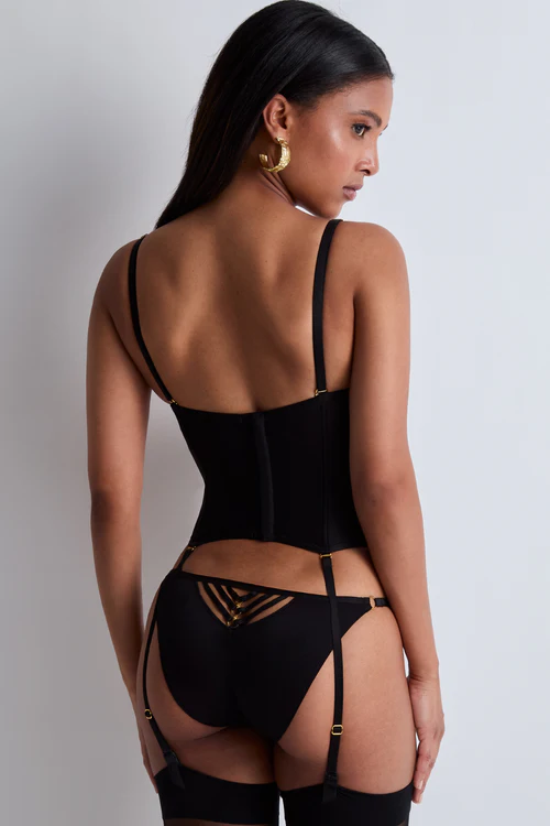 Embrace the allure of Aubade Voodoo Kiss Lingerie. This exquisite underwired basque is a masterpiece of craftsmanship, featuring delicate embroidered tulle embellished with shimmering gold lurex thread. The seductive bronze jewel strapping at the centre front adds a touch of opulence. Designed with your comfort and fit in mind, the cups are underwired for support and a flattering fit. The adjustable and detachable shoulder and garter straps offer versatile styling options. For those who seek luxury and elegance in their lingerie, explore our Aubade collection for the most exquisite new styles. Care is simple; just hand wash to maintain its luxurious texture.