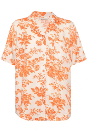 The Wilda shirt in creme with orange flowers is cut from the softest lyocell satin. It has an elegant and casual fit. This shirt is a perfect edition for both casual and festive occasions. Wear it with our Wilda pants or shorts and a pair of heels for an elegant look on a night out!